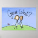 Perfeito em anunciar uma cerimônia de noivado, casamento ou compromisso com o seu parceiro, este design apresenta uma bela e doce imagem de um casal lésbico com o texto "adivinhem o quê".