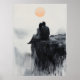 Uma pintura minimalista e emocional de um casal sentado num penhasco, mirando num pôr do sol sereno com um sol laranja. Esta trabalho de arte evocativa captura intimidade e amor, perfeita para espaços ou presentes românticos, trazendo tranquilidade e beleza a qualquer lugar.