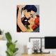 Casal em um abraço amoroso ela tem cabelo vermelho e uma flor brincando vintagem retro anime Poster anime anime ficção cômica manga