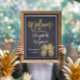 Placas de Boas-vindas para Recepção de Casamento - Modelos de Cartaz Elegante Folheado a Ouro Falso Abacaxi Casal em Fundo de Linho Azul-Marinho Floral Damask.