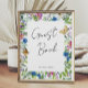 Poster de Casamento Colorida Primavera Wildflower por favor assine nosso guia. Flores modernas, elegantes e coloridas de aquarelas, estas flores silvestres caprichosas com belas borboletas são felizes e perfeitas para casamentos de primavera ou verão.