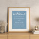 Este empoeirado sinal azul de boas-vindas exude tranquilidade para um casamento costeiro de verão no mar. Personalize esta decoração azul de cinza clara com uma elegante tipografia branca minimalista para corresponder ao seu esquema de cores sereno.