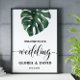 Design de Folha de Monstera Verde. Este poster de boas-vindas do casamento combina dois tamanhos de fonte para uma aparência mais dinâmica. Para itens correspondentes, siga o link: https://www.zazzle.com/collections/green_monstera_leaf_collection_a120-119702964394144033 ou simplesmente escreva A120 na caixa de pesquisa desta loja (compro). Caso precise de personalização para o design, entre em contato comigo: szdesigns2021@gmail.com