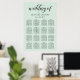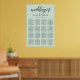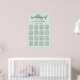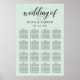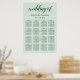 O gráfico poster de assentos de casamento verde-azul-menta moderno e chic apresenta um design tipográfico preto-na moda com acentos de script de caligrafia em negrito e texto elegante que pode ser personalizado com um monograma dos nomes de noiva e noivo, nomes de convidados organizados por seus números de tabela atribuídos.