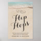 Sinal de festa de casamento personalizado com um fundo da ilha tropical oceânica de verão, uma praia arenosa vintage com dois corações na margem, suas iniciais e um modelo de texto flutuante sacudir.
