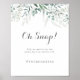 Este casamento minimalista de eucalipto verde oh snap poster é perfeito para um casamento ou chá de panela rústico. A design apresenta uma coloração aquosa elegante folhas verdes de eucalipto. Personalize a placa com a hashtag de casamento.