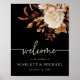 Este elegante cartaz de casamento apresenta cor d'água queimada à mão, laranja queimada e folhas de terracota, creme e dálias beges, e belas rosas de cor ferrugem sobre fundo preto com texto creme. Localize itens correspondentes na Coleção Romance de outono Preto.