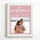 Este poster de boas-vindas, cor-de-rosa, empoeirado rosa, com sua fotografia de noivado, apresenta uma delicada tipografia branca para uma cerimônia de tarde romântica para uma noiva feminina que gosta de cores suaves e design de guião mínima. Decoração cor-de-rosa macia.