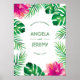Poster Casamento de Hibiscos Rosa e Folhas Tropicais