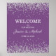 Púrpura elegante com poster de casamento brilhante de prata com texto, "Bem-vindo ao nosso casamento." Personalizado com os nomes da noiva e do noivo e sua data de casamento.