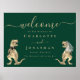 Poster Casamento do Tema Dinossauro Bem-vindo Verde Escur
