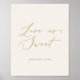 Este pôster de casamento doce amor delicado em ouro e creme é perfeito para um casamento moderno. O design minimalista romântico apresenta uma tipografia amarela dourada champanhe adorável e elegante em um fundo creme marfim com uma aparência limpa e simples. Personalize o texto para dizer o que você quiser!
