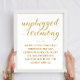 Este elegante símbolo de cerimônia desplugado apresenta um estilo minimalista de ouro falso e branco com uma mistura de escrita manual e fontes simples de blocos. Será perfeito para pedir aos seus convidados para desligarem os celulares e as câmaras durante a cerimônia. Parte da coleção Alejandra.