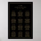 Simples poster de assentos de casamento com um design moderno, mas elegante, com seu monograma de duas letras, nomes e data com o gráfico abaixo, cercado por uma fina borda. O modelo tem três colunas com doze mesas de oito convidados como exemplo, mas pode ser personalizado para seu número de mesas e convidados. Todo o texto está em ouro sobre um fundo preto e pode ser alterado para qualquer cor que você desejar clicando no botão "personalizar". Um design de assentos de chic e na moda que é excelente para um casal minimalista.
