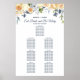 Adicione seu próprio toque especial a este elegante design floral de aquarela com script moderno, texto azul marinho e rosas de pêssego e coral marinho e flores silvestres Este quadro apresenta os nomes da noiva e do noivo junto com as palavras "Coma, Beba e Seja Feliz" e "Por favor encontre seu assento". Modelos são fornecidas para até sete mesas com até 10 ou 11 nomes por mesa.