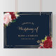 Este ouro geométrico e poster de boas-vindas tropicais vermelhas é perfeito para um casamento rústico. O design de marsala, artístico bordo, apresenta rosas de aquarelas, verdes, cor-de-rosa, burgundy e blush, combinados com verde, bem arrumados em torno de quadros de ouro geométricos, num buquê de flores gracioso e radiante. Faça desta poster com o nome da noiva e do noivo, e a data do casamento.