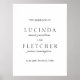 Poster de boas-vindas a preto e branco elegantes, com um design simples e mínimo com os nomes da noiva e do noivo em uma fonte serif tradicional e o meio e sobrenomes em um roteiro elegante de caligrafia. Um estilo clássico perfeito para um casamento formal