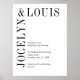 Poster de sinal de boas-vindas moderno do casamento, com um design branco e preto minimalista com seus nomes em uma fonte grande ao lado esquerdo e superior. Esta design é simples o suficiente para um casamento formal, mas faz uma declaração ousada.