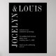 Poster moderno de boas-vindas ao casamento com um design preto minimalista com os seus nomes numa fonte grande ao lado esquerdo e superior. Esta design é simples o suficiente para um casamento formal, mas faz uma declaração ousada.