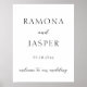 Poster de boas-vindas do casamento elegante com um design simples e mínimo. Um layout clássico com seus nomes em letras grandes para uma reviravolta moderna para este estilo tradicional. Este design preto e branco pode ser modificado para qualquer cor que você escolher na ferramenta de edição de design. Este sinal de boas-vindas é perfeito para um casamento formal.