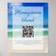 Uma foto linda das ondas do oceano decora este pôster moderno de fundo para lua de mel de casamento. Linda caligrafia cursiva azul sobre a fotografia do litoral tropical para o seu cartão de casamento de praia.