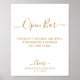 Abrir Bar! Caligrafia simples, mas elegante, esta placa de bar de casamento apresenta bar Aberto em caligrafia elegante, e as bebidas de Tonights são gratuitas, as histórias de amanhã são inestimáveis. Personalize este símbolo elegante de casamento com seus nomes e data! COPYRIGHT © 2020 Judy Burrows, Black Dog Art - Todos Os Direitos Reservados. Poster de Casamento Personalizado de Script Dourado de Bar Aberto Elegante