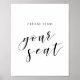 Sinal de mesa de assentos de casamento personalizado com design preto e branco minimalista moderno.