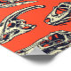 Este poster apresenta crânios de dinossauros ilustrados à mão em azul marinho e creme num fundo vermelho-alaranjado brilhante.
