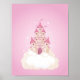 Um bonito ajustado de castelo rosa para uma princesa flutuando em uma nuvem branca fofinha