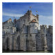 O Castelo dos Condes em Gand, Bélgica. Pintura do castelo medieval Gravensteen cercada por água.