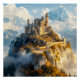 Uma ilustração digital de um castelo, mostrando as paredes torrenciais, torres majestosas e detalhes intrincados como ele estava no seu auge.