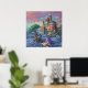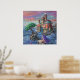 Se você ama as sereias, então esta pintura é para você. O Castelo de Sereia pintado por Traci Van Wagoner apresenta uma sereia com cabelo roxo na frente e uma sereia com cabelo verde se soltando em ilhas rock enquanto outra sereia com natações de cabelo cor-de-rosa no oceano diante de um castelo com um céu roxo, laranja e amarelo por trás. Esta bela e caprichosa arte da fantasia faz um presente de excelente e uma decoração espantosa para o seu escritório ou casa.