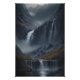 Uma paisagem épica e inspiradora onde uma poderosa cascata pula através de paredes rochosas escuras e cobertas de musgo. A neblina densa e a luz suave criam uma atmosfera misteriosa e dramática, evocando o poder bruto da natureza e um senso de grandeza ancestral. Um sentimento de paz e admiração mistura-se com o poder imponente da cascata.