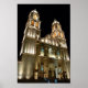 Uma foto da catedral em Campeche, México à noite. Lembro que do lado do prédio sagrado estava um videogame que eu sempre me interessava mais em visitar quando criança.