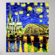 Esta bela design mostra Colônia na Alemanha e é uma catedral famosa num estilo de pintura de Van Gogh na Noite Estrelada.