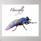 Esta impressão é decorada por uma mosca de cor selvagem em blues e pinks fluorescentes, sobre um fundo de branco. Mas cuidado. Ele morde!