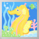 Bonita, branca, balançando o cavalo marinho no mar tropical azul. Arte original por pequena arte da laura. Decoração tropical divertida para grandes e pequenas pessoas.