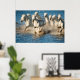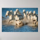 Cavalos brancos de Camargue, França, correndo em água azul-mediterrânica | Sheila Haddad / DanitaDelimont.com