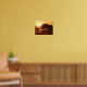 Pele de bucha e cavalo de dun pastoreando o poster de fotos do nascer do sol. Dimensionado para 14x11