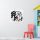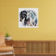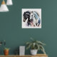 Poster com um par de cavalos negros e brancos juntos. Ilustrado com aquarelas.