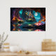 Cristais e árvores brilhantes em uma caverna aquática sob uma lua de cheio Arte AI criada por minx267