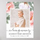 Esta placa floral cor-de-rosa-d'água é uma forma excelente de acolher aqueles que são matinais a perda de um ente querido na celebração do serviço de vida. Clique no botão personalizar e você poderá facilmente substituir a imagem por um de seus entes queridos, bem como alterar suas informações. O tamanho recomendado para um sinal de entrada impressionante é 24x36.