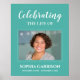 serviço memorialletreiro de funeralmodernofotografiacelebrando a vida defoto do falecidoem memória deeleganteazul verde azulado branco turquesacelebração da vida da mulher