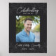 Cartaz de funeral preto ou cartaz memorial com a foto de seu ente querido, o nome de seu ente querido em uma fonte fina e anos vivendo em fontes brancas elegantes contra um fundo preto com verde desbotado cinza. Um cartaz de serviço memorial verde com uma grande foto. Celebração da vida do cartaz personalizado com a foto, nome e anos vivendo de seu ente querido.