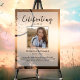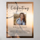 O pôster memorial perfeito para cumprimentar familiares e amigos ao entrarem na celebração da vida de seu ente querido. O design apresenta uma foto pessoal quadrada, 5 linhas de texto personalizado e uma foto de fundo de um apanhador de sonhos soprando ao vento. Você pode facilmente trocá-la por uma foto de fundo própria. Clássico, porém único - este modelo é muito fácil de personalizar e também será uma lembrança memorial maravilhosa.