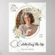 Celebre uma vida linda com este elegante pôster memorial de Celebração de Vida. Com design de flores brancas suaves, detalhes sutis de mármore e uma foto personalizável, este cartaz de funeral adiciona um toque de calor e graça a qualquer serviço ou evento de recordação. Perfeito para ser exibido em um cavalete, mesa de memória ou em casa como um lembrete duradouro. Personalize com o nome do seu ente querido, foto e datas para criar uma homenagem atemporal que honra a memória dele de forma linda. (2213)