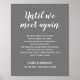 Este elegante letreiro memorial, com o seu tocante poema Até nos Encontrarmos Novamente em branco sobre um fundo cinza, é uma maneira bonita de lembrar e homenagear o ente querido na reunião de Celebração da Vida. Também faz um lindo souvenir para a casa. Personalize com o seu texto na parte inferior.