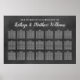 Um elegante quadro de assentos de casamento, poster, apresenta um monograma dos nomes da noiva e do noivo e um texto de modelo personalizado para vinte e uma (21) mesas com nomes de convidados. O quadro negro e o esquema de cores brancas podem ser personalizados para coordenar com as suas cores.
