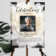 O pôster memorial perfeito para cumprimentar familiares e amigos ao entrarem na celebração da vida de seu ente querido. Especialmente para alguém que ama flores e talvez jardinagem - o design apresenta uma foto pessoal quadrada, 5 linhas de texto personalizado e uma foto de fundo de um belo crisântemo branco. Você pode facilmente trocá-la por sua própria foto de fundo. Clássico, porém único - este modelo é muito fácil de personalizar e também será uma lembrança memorial maravilhosa.