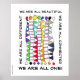 Esta arte desenhada pela mão foi criada para celebrar a beleza da diversidade e a percepção de que somos todos um através do nosso compartilhamento deste planeta, do ar, da água e do sol. Todos nós compartilhamos na luta e beleza únicas de ser humano. E todos merecemos o respeito e o apoio dos nossos concidadãos. Este poster seria um presente excelente para um amigo ou membro da família que partilha estes valores. Também está disponível em outros produtos na minha loja. Avise-me se houver um produto no qual você não o veja que você se interessaria. Esta arte foi criada pela artista/designer, Judith Schmidt, e é protegida por direitos autorais.